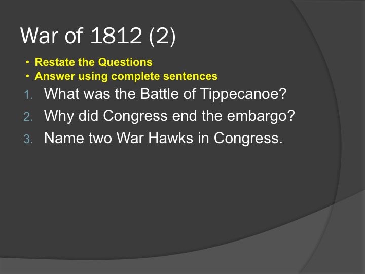 War of 1812 (2) | 04/03/17 | 04/06/17 | 04/03/17 | 04/06/17 |