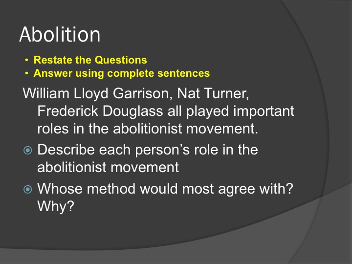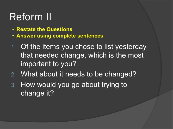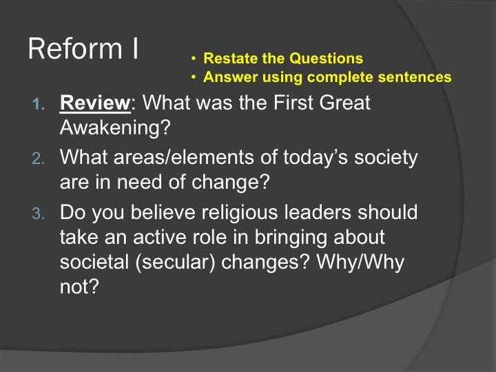 Remember, when responding to the Bell Ringer, your answers must use complete sentences and restate the question.